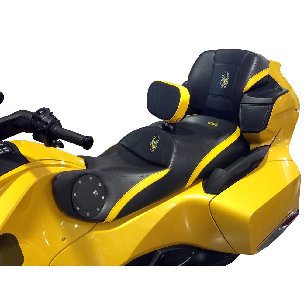 - The Ultimate Spyder RT seats are built to sit the rider and passenger in a more upright position with correct side lateral support for cornering.