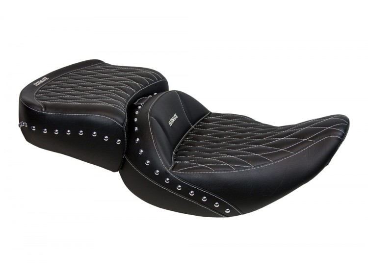 The stock seat on your Roadmaster® is a 1-piece driver/passenger system. Ultimate Roadmaster® seats were designed as 2-piece systems. This allows the Indian® Quick Detach Roadmaster® Trunk and the Ultimate passenger seat to be removed to set your Roadmaster® up as a solo bike.
